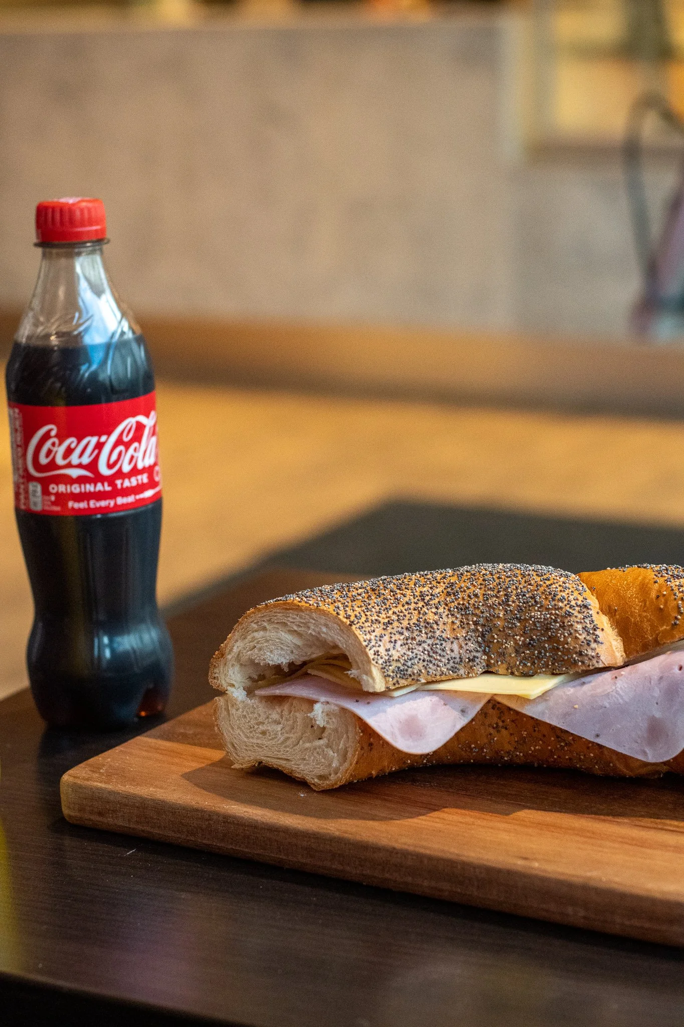 Pizzahorn, liten pizza eller baguette med ost og skinke